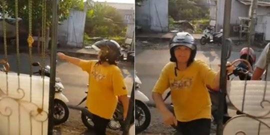Dalam video berdurasi 30 detik itu, seorang wanita berkaus kuning dan mengenakan helm hitam terlihat adu mulut dengan pria paruh baya.